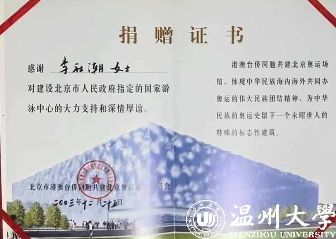 ▲李社潮“百年奧運”捐款證書