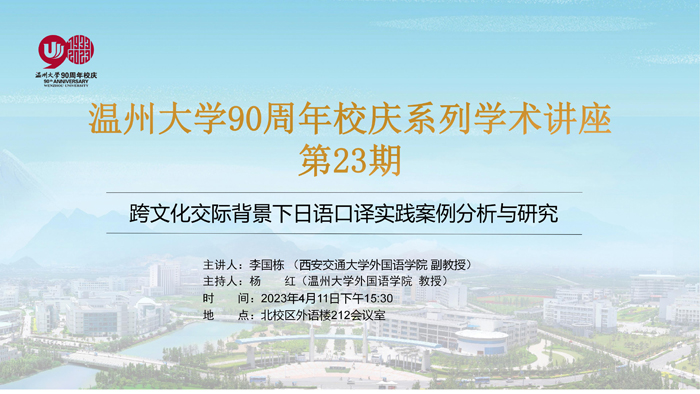 溫州大學90周年校慶系列學術講座(二十三)